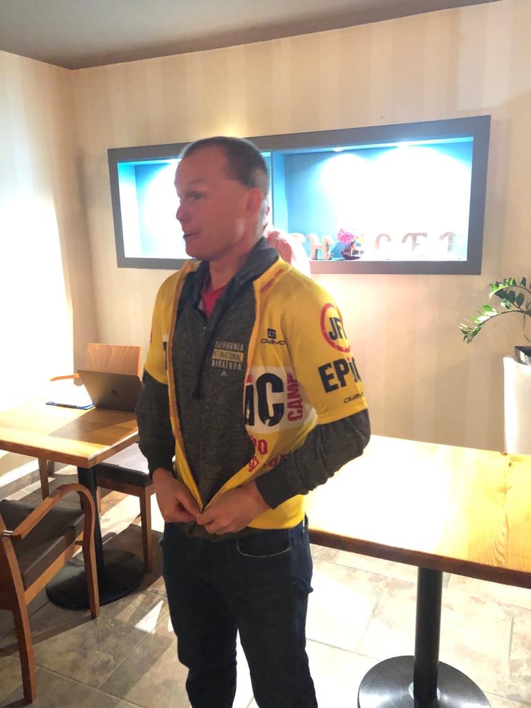When all the numbers were crunched, Chrissie won the polka dot jersey for holding the highest %FTP on the designated KOM climbs. Ben won the red jersey for having the most points during the races we held while on the camp, and I narrowly held off George to get the yellow jersey for the most overall points.